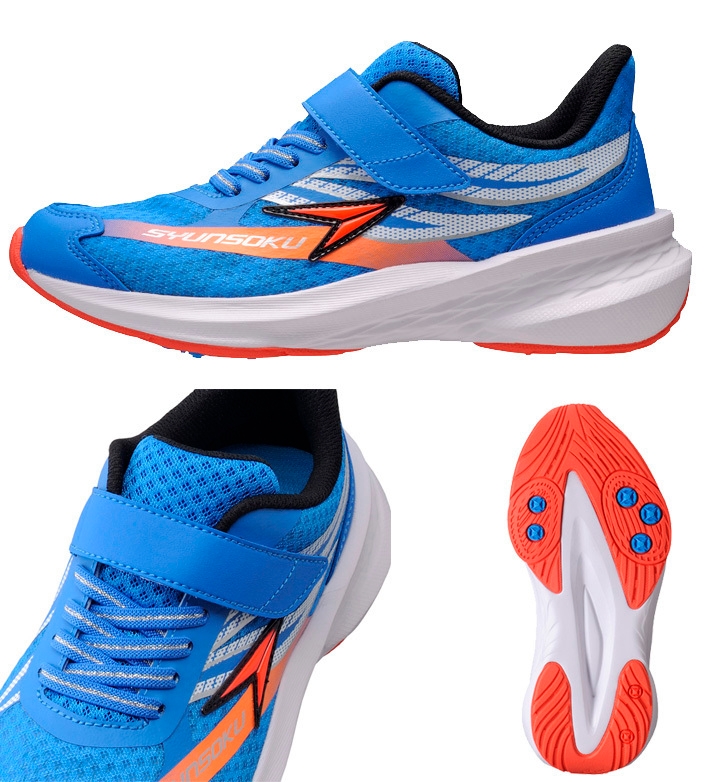 画像左 ハヤブサ、瞬足 JJ-171、ブルー、4,730円(税込)、16.0~23.0cm(ハーフサイズあり:2.5E)