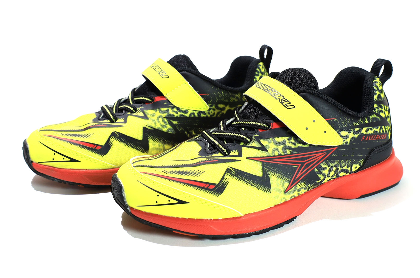 画像右 チーター、瞬足 JJ-172、イエロー、4,730円(税込)、16.0~23.0cm(ハーフサイズあり:2E)
