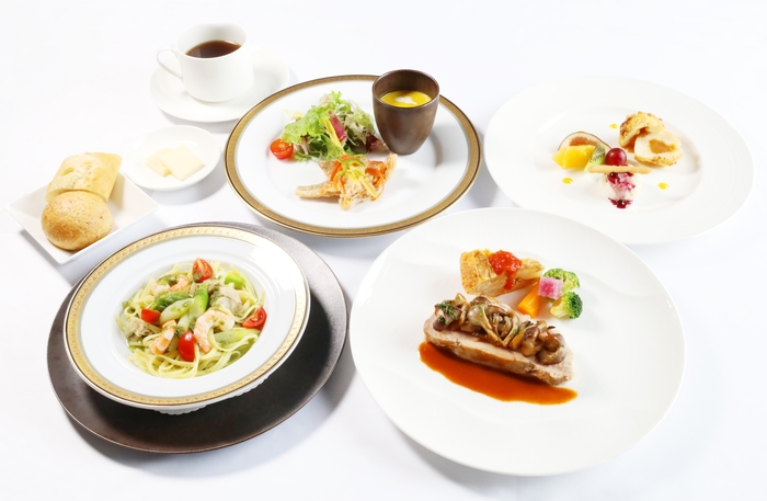 オードブルからメインの放牧牛赤身肉のステーキ シャリアピンソースなど、6品がついたカジュアルディナーと、朝食ではすき焼きやご当地風ラーメン、たこ焼きや串カツなどバラエティー豊かなビュッフェをお召し上がりいただけます。