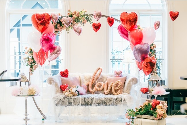 会場となる「新浦安アートグレイス ウエディングコースト」は、美しい眺めと風が心地よい、4,300坪もの広大な敷地に建てられたゲストハウスウエディング会場。デザートブッフェの会場内には、ピンク色の花々やハート型のバルーンに彩られた限定フォトスポットが登場いたします。さらに、お客様同士で贈りあえるハート型のメッセージカードもご用意。カップルで、ご友人同士で、ご家族でもお楽しみいただける限定デザートブッフェをご堪能ください。
