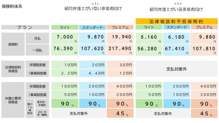 プランについて: スタンダードプランでは月額1万円を切る価格で法律相談料や弁護士に委任する際の着手金等の保険金支払を受けることができます。