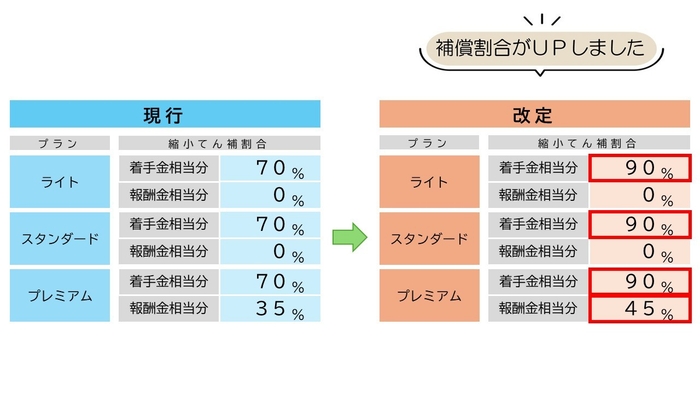 *着手金・手数料:すべてのプランで70%から90%へ拡大 報酬金:プレミアムのみ35%から45%へ拡大