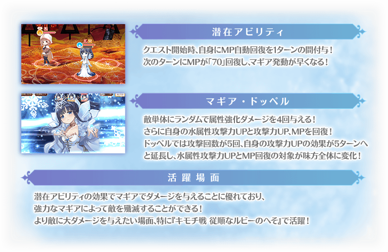 本ガチャでは、2017年から2018年に登場したクリスマスの★4魔法少女とメモリアが期間限定で登場いたします。