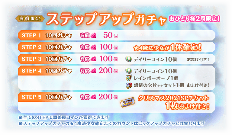 有償限定 ステップアップガチャ クリスマス魔法少女2021編