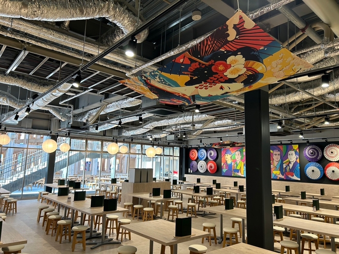 さらに、視覚障害とパニック障害と闘いながら描き続けるアーティストGO氏とコラボレーションし、日本のランドマークを浮世絵風ポップアートで描いた「大型屏風」を店内エントランスに設置。フォトスポットとして世界中のお客様に人気を博すことが期待されます。また、GO氏による作品『日本の歴史上の偉人たちがうどんを食べる姿のポップアート』も店内に展示し、食と芸術が融合した空間を演出します。