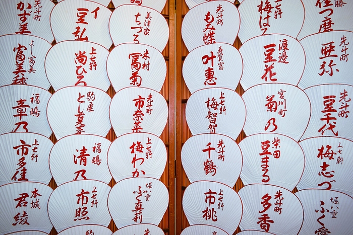 芸妓さん・舞妓さんがお得意先などに配る名前入りのうちわとして有名な