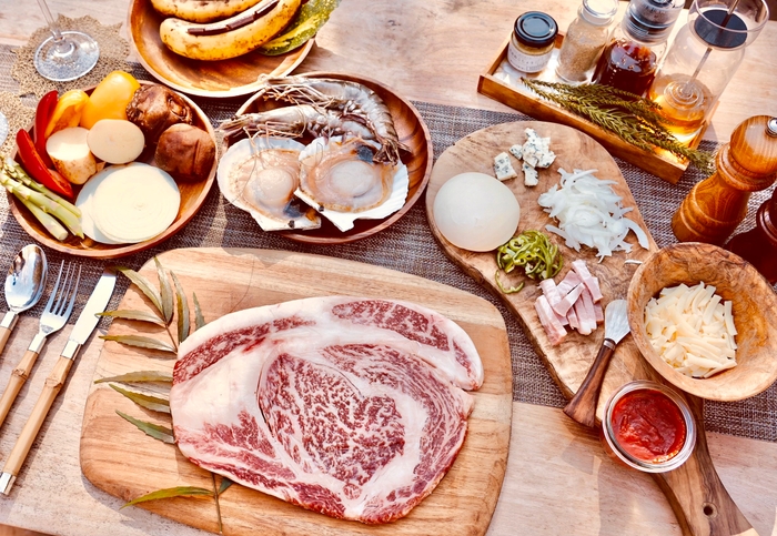 プライベートガーデンでいただくバーベキューも「国産肩三角のステーキ」「日南鶏」「オーストラリア産ラム肉」「国産リブロース」などの厳選食材をご用意。
