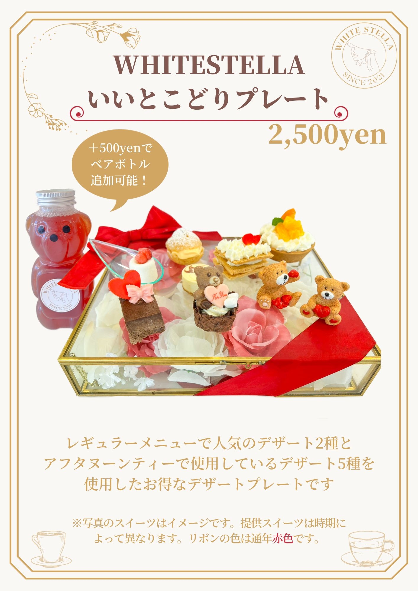 六本木・西麻布にあるフォトジェニックカフェ「ホワイトステラ」では、アフタヌーンティーが新登場するたび、アフタヌーンティーに使われているデザートとホワイトステラで人気デザートを使用したお得なプレートも販売中!