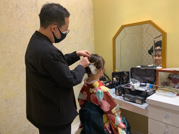 ヘアメイク、着付け、写真撮影は、どちらも密にならず広々とした空間で行ないます。