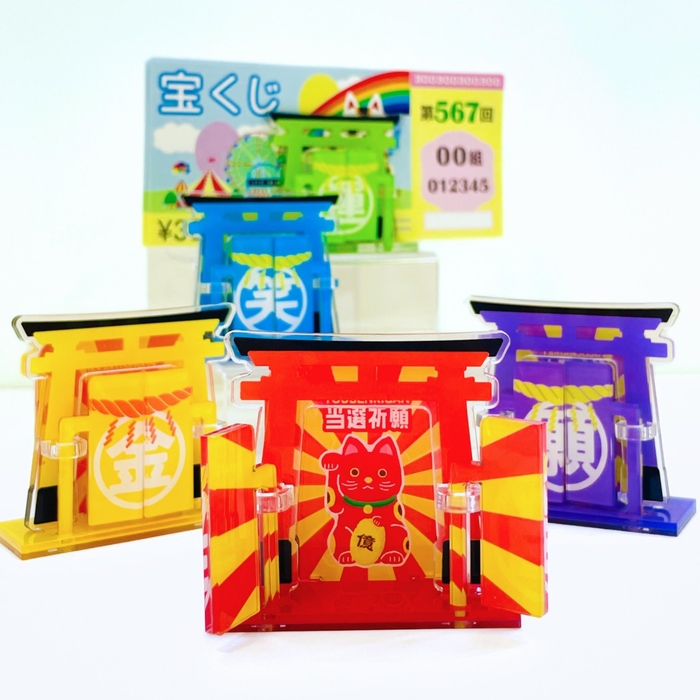 「宝くじを祀る神棚」は、アクリル製パーツを組み立てると、高さ約5.5センチの“セルフ神棚”になるアイテムです。