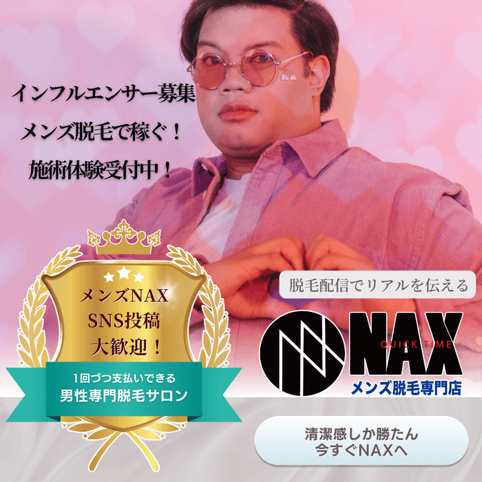 メンズ脱毛NAXでは、インフルエンサーの皆様のご来店大歓迎!