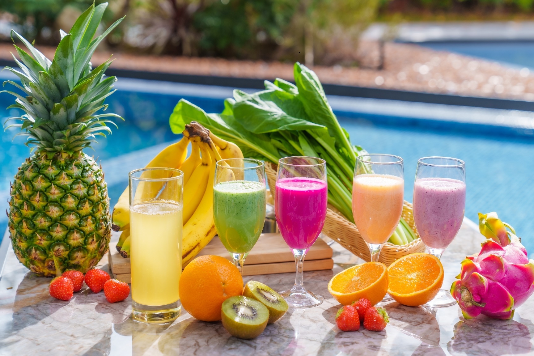 滞在中の間食には、当館の野菜ソムリエが厳選の「糸島野菜」を使用したスムージーをご提供いたします。太陽をたっぷりと浴び、味が濃く栄養たっぷりな糸島野菜で、美味しく無理なく栄養補給とデトックスが可能です。