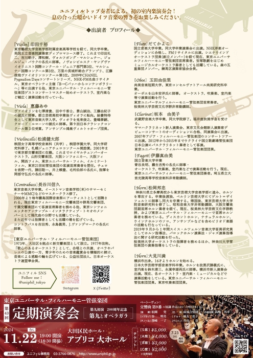ベートーヴェンの七重奏をメインに、東京ユニバーサル・フィルハーモニー管弦楽団の弦楽器と木管楽器のアンサンブルを堪能 『第一回室内楽演奏会』開催決定