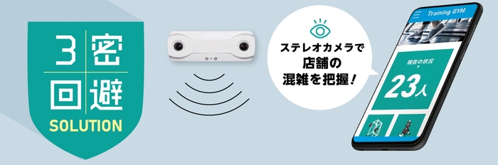 ウィズコロナの現在、店舗や施設では、消毒、検温、換気などとともに、ソーシャルディスタンスによる密の回避が行われています。「3密回避ソリューション」は、来場者に混雑状況を事前に伝えることで、混雑を避けて安心して訪問できる環境を提供します。
