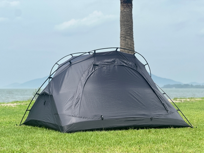 賑わうキャンプ場の中でも人目を気にせずプライベート空間を堪能。シルナイロン生地特有の美しさと、無駄を省くことでシンプルかつ存在感のあるデザイン。合理的なフレームワークで、居住空間を確保しながらも軽量化を実現。