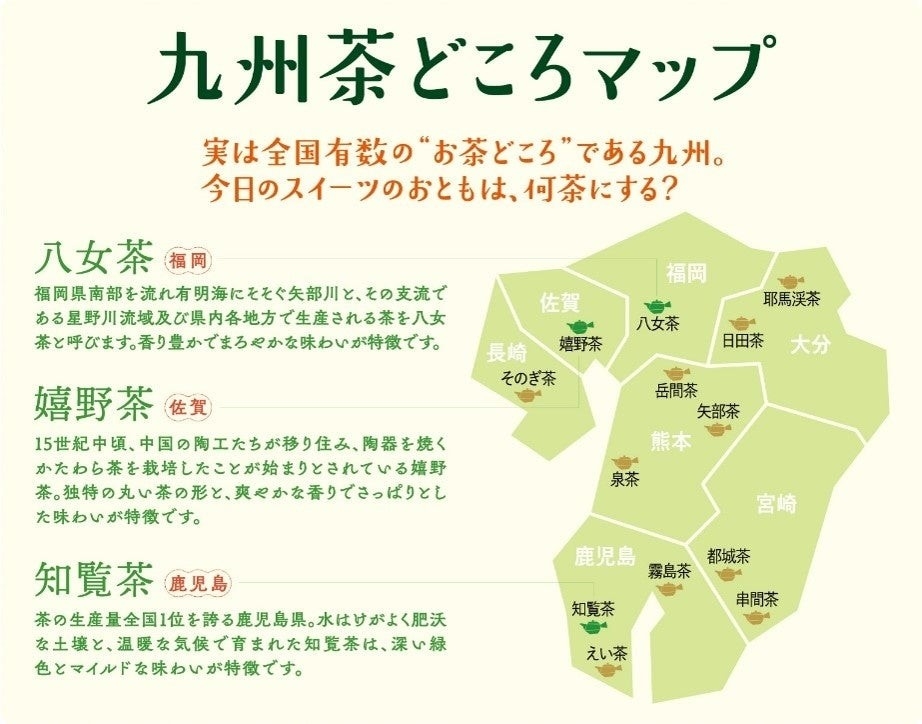 4月29日(金)より開催いたします「マイング 新茶・抹茶セレクション」では九州各地のお茶どころから届いたおいしい新茶や八女茶を使用したスイーツなど37種を楽しんでいただけます。