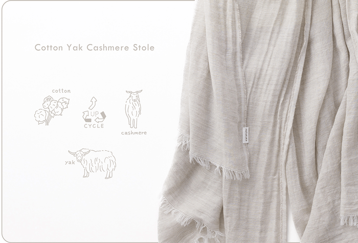 今回発売するコットンyakカシミヤストールは、HaTaKaKe Upcycle Projectという取り組みの一つで作り上げた商品です。