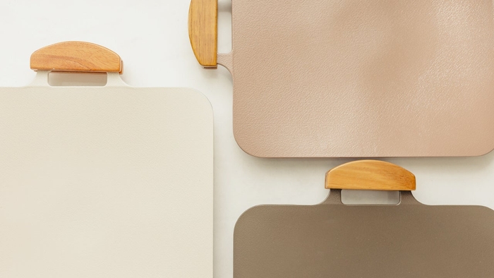 持ち手(グリップ)にはチーク素材を使用し、ナチュラルでぬくもりのあるデザインでありながらもラグジュアリーな雰囲気を感じるチャコール、ホワイト、ヌーディーピンクの3つのカラーでご用意いたしました。