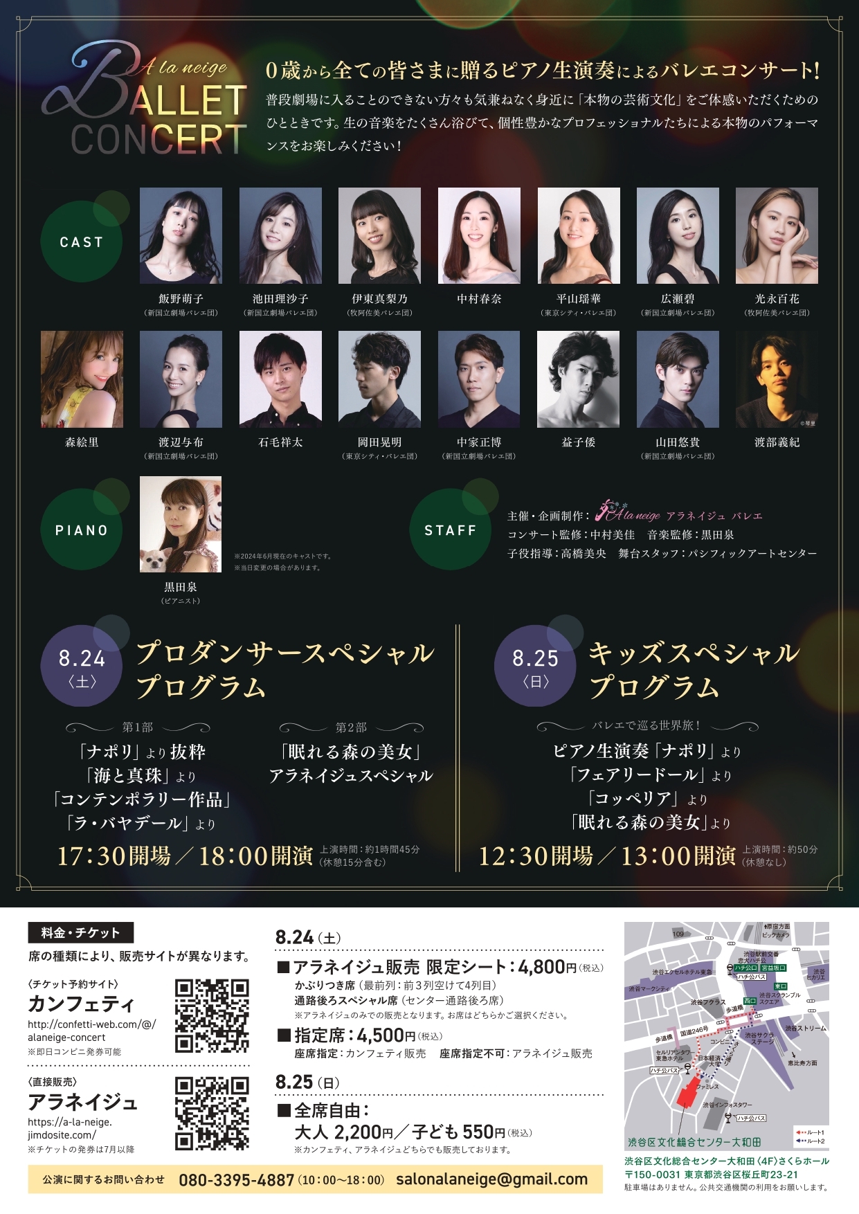 A la neige主催、『生演奏&バレエコンサート』が2024年8月24日 (土) 〜 2024年8月25日 (日)に渋谷区文化総合センター大和田(東京都 渋谷区 桜丘町 23-21)にて開催されます。