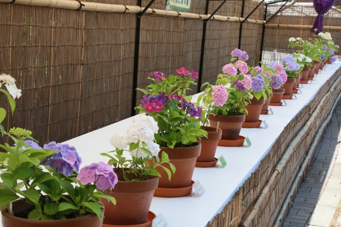 ヤマアジサイを中心に可憐な園芸品種の鉢植えの数々を展示します。