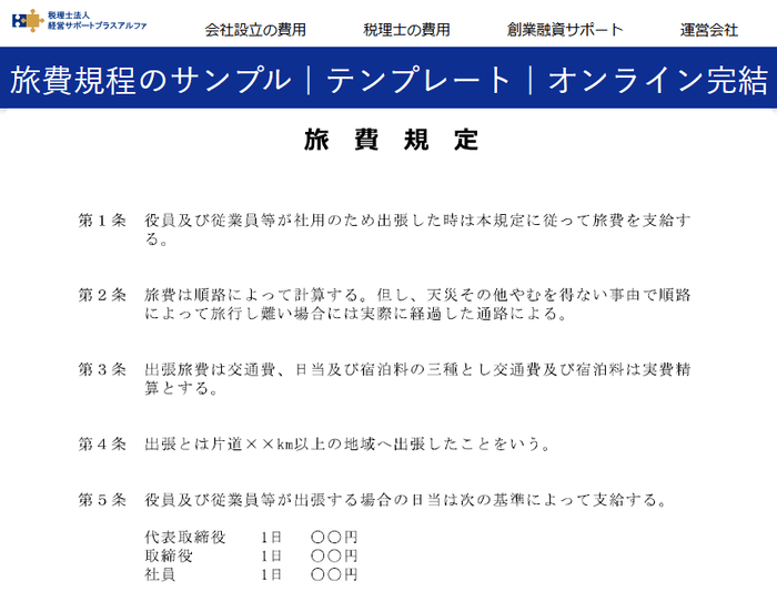 「旅費規程のサンプル|テンプレート|オンライン完結」ツール: https://keiei-support-plus-a.com/zeirishi-hiyou/ryohikitei-sample-template/