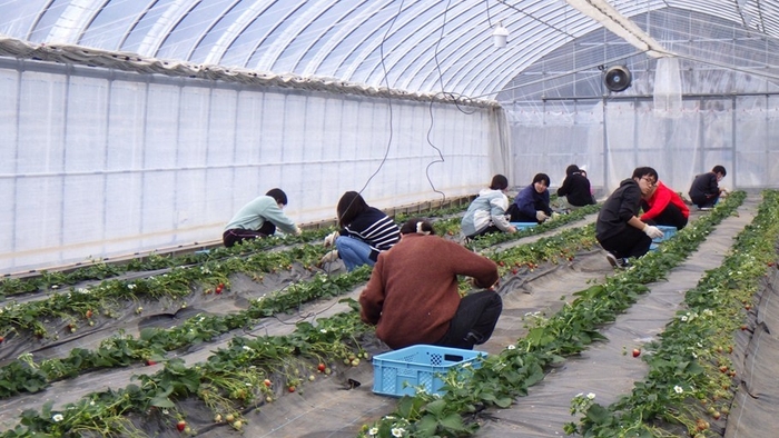 現在、農業未経験の農学部生18人が中心となり、株式会社アグリスタ(埼玉県川口市)の液肥を活用したイチゴの栽培試験を行うとともに、イチゴ栽培のプロである、いちごの縁F(いちごのえん エッフェ)(奈良県生駒市)の指導のもと、イチゴの定植から収穫までの栽培のノウハウを「実学」で学んでいます。今回の販売を通じて、商品販売のプロである大和アグロファーム株式会社の指導のもと、イチゴ販売に関するノウハウも実践的に学びます。