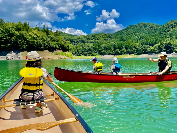 テントを立てて秘密基地を作る体験や、湖でお散歩とカヌー体験をするなど、お子様には存分に小鹿野町の自然を満喫していただきます。
