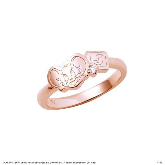 ピンクゴールドカラーで表現したキュートな笑顔のジェリーとイニシャルを組み合わせたウェーブデザイン。ワンポイントのストーンが指元でキラリと輝きます。