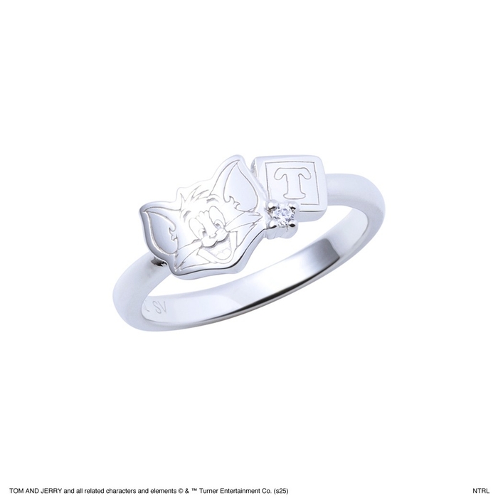 シルバーカラーで表現したキュートな笑顔のトムとイニシャルを組み合わせたウェーブデザイン。ワンポイントのストーンが指元でキラリと輝きます。