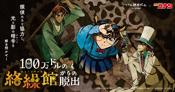 株式会社SCRAP(本社:東京都渋谷区 代表:加藤隆生)は、大人気テレビアニメ「名探偵コナン」とコラボレーションしたリアル脱出ゲームの最新作『100万ドルの絡繰館(からくりやかた)からの脱出』を全国9都市にて追加開催することを発表いたします。