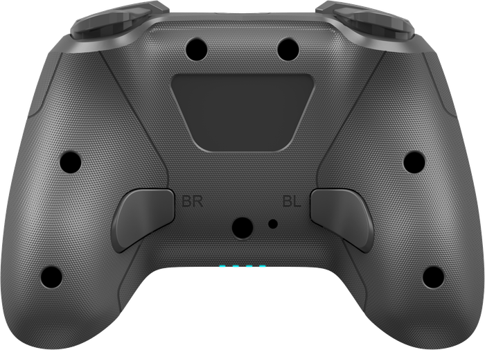 背面に2つの拡張ボタンを搭載。各種ボタンを割り当てられ、Lスティックボタンを割り当ててFPSで走りやすくしたり、アクションゲームなどで攻撃ボタンを割り当てて溜め撃ちをしやすくしたりなど、さまざまな用途に活用できます。また、便利な連射機能(秒間約20連射)も搭載しています。