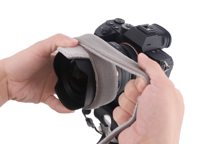 マイルドファスナーは、一般的な面ファスナーと比べて、着脱時に強い力を必要としないことが特長です。そのため、ベリベリとした音や、不快な感触がなく取り付けが可能。画角やフォーカスリングへの影響も最小限に抑えます。