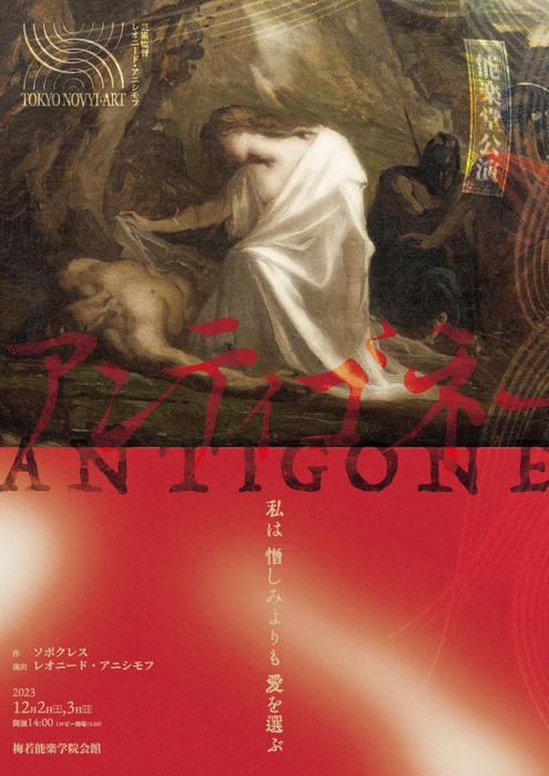 認定NPO法人TOKYO NOVYI・ART(東京都世田谷区)主催、能楽堂『アンティゴネー』公演が2023年12月2日 (土) ~2023年12月3日 (日)に梅若能楽学院会館(東京都中野区東中野2-6-14)にて上演されます。