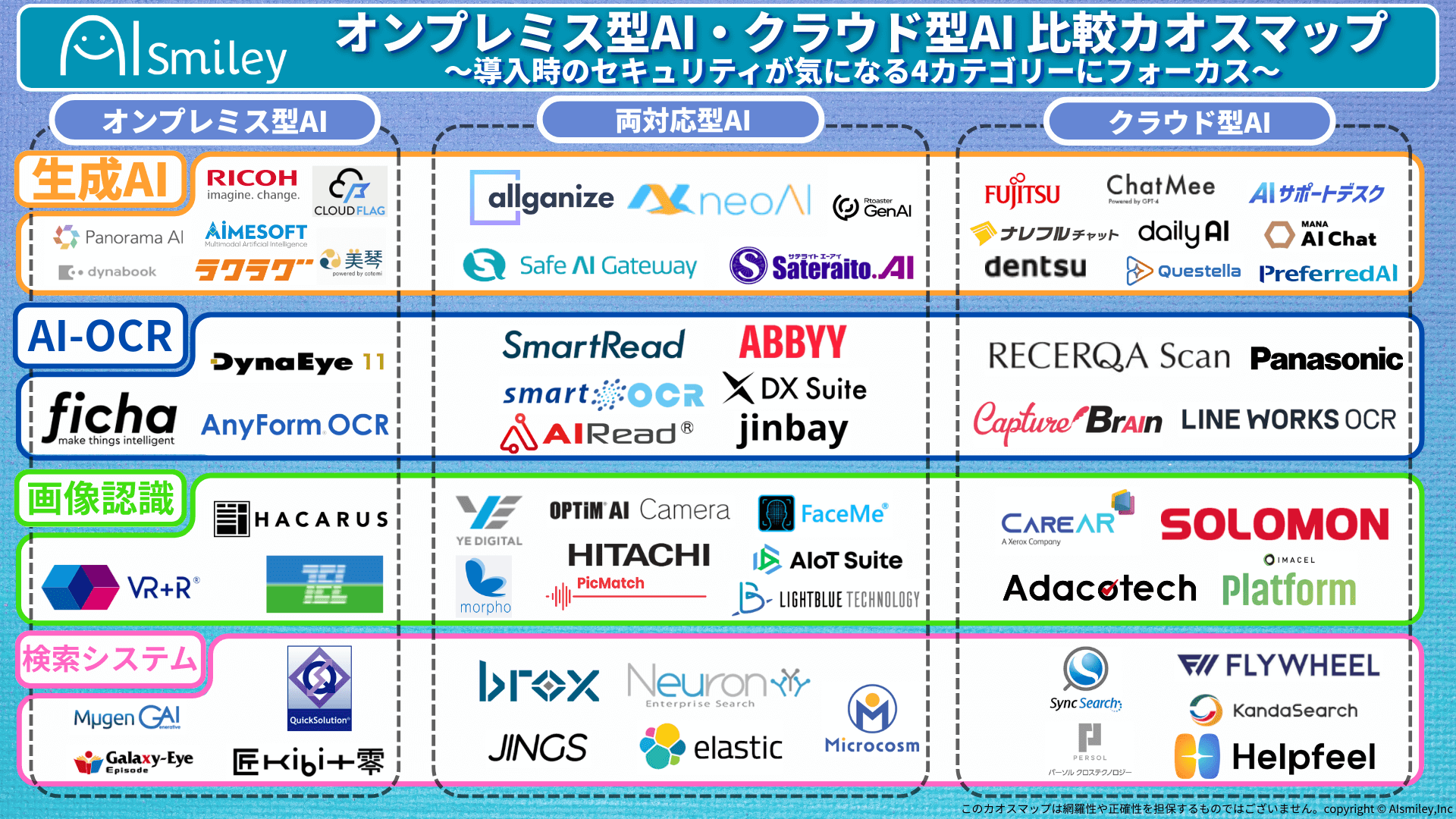 ■オンプレミス型AI・クラウド型AI 比較カオスマップを無償提供
