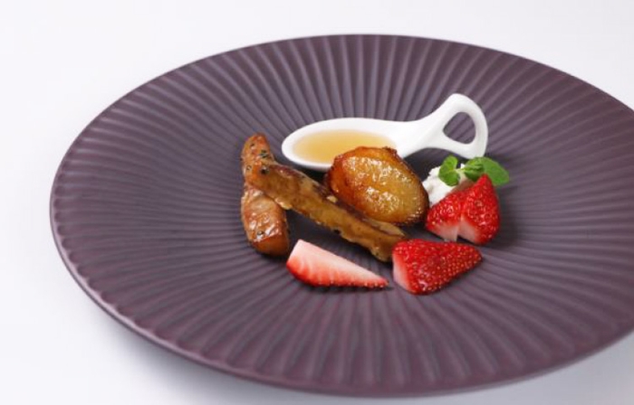 白磁ではニッコー株式会社(白山市)製の美しい陶磁器が使われています。ハチバンはその陶磁器の魅力を生かし、味にも見た目にもこだわったスイーツを開発いたしました。