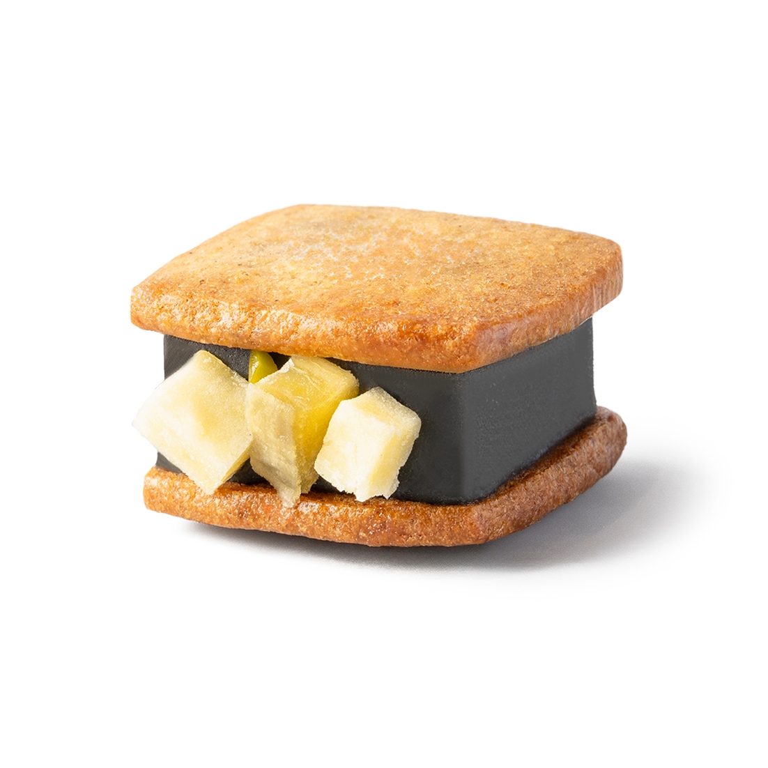 和歌山産ぶどう山椒の爽やかな風味と、リッチなカカオの香りが楽しめるバターサンド。お酒とともに味わうことで、より一層引き立つ大人の味わい。
