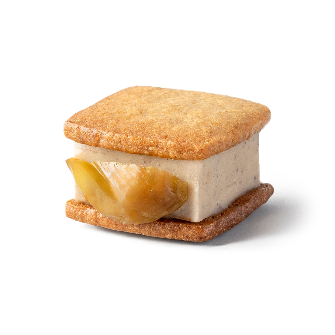 皮ごと蒸した栗かぼちゃのクリームが織りなす、濃厚で豊かな味わいのバターサンド。ほんのりと甘みを感じるピスタチオがアクセントとなり、上品でまろやかな一口が、特別な時間を演出します。心まで満たされる贅沢なひとときをお楽しみください。