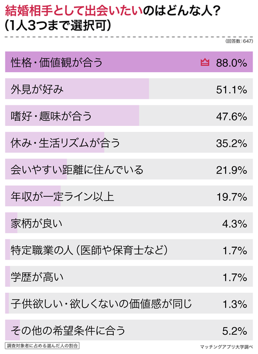 88%が、理想の結婚相手に「性格・価値観が合う人」を選択