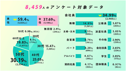 今回、ECナビ会員を対象としたアンケート調査に回答した男女比率は、「男性:59.4%」「女性:37.69%」で、もっとも多く回答した年代は「50代」で全体の30.19%でした。