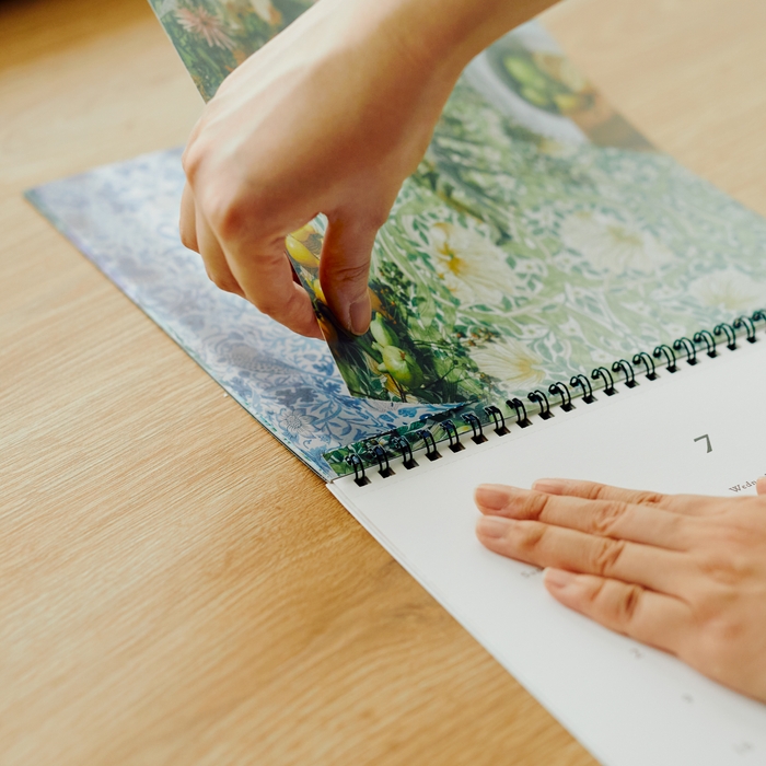 「#花とモリス」の美しい世界をじっくり堪能し終えたら、リング部分のミシン目で切り離すと素敵なアートに。