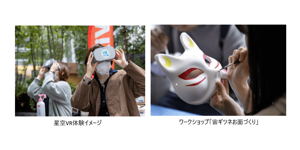 8月19日(土)20日(日)には、鳥取県による鳥取砂丘の美しい星空を楽しめる星空VR体験を実施。8月26日(土)27日(日)には、宙フェスイベントで人気のワークショップ「宙ギツネお面づくり」も行われます。