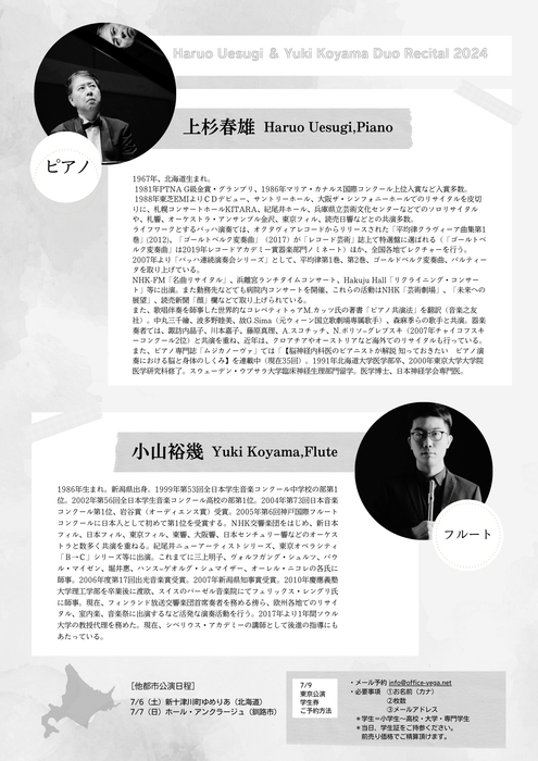 元祖”二刀流”脳神経内科医ピアニスト・上杉春雄と、フィンランド放送交響楽団首席フルート奏者・小山裕幾 ”理系”同士の初共演『上杉春雄・小山裕幾 デュオ・リサイタル』開催決定