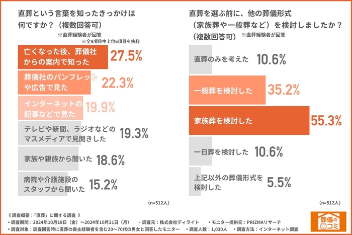 株式会社ディライト(所在地:東京都新宿区、代表取締役:高橋 亮)は、直葬の喪主経験者を含む20〜70代の男女を対象に「直葬」に関する調査を行いました。