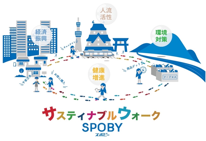 ウォーキングアプリ「SPOBY」は2020年度自治体や企業体における実証実験にて社会課題の解決に効果を立証いたしました。市民の歩行を活性化させることで経済振興、環境対策、健康増進を図る社会的なプログラムとして「サスティナブルウォーク」を稼働させます。