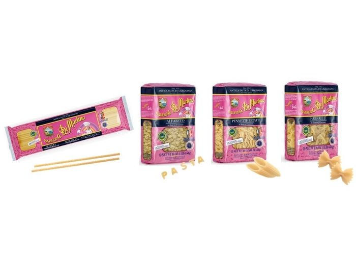 ディ・マルティーノ社は、南イタリア・カンパーニア州グラニャーノに位置するイタリアを代表する高品質パスタメーカーの一つ。同社が作るパスタはすべて、「グラニャーノの町で生産」「ブロンズ製のダイスを使用」「プロテイン含有量13%以上(ディ・マルティーノ社は自社基準で最低14%)」などの条件を満たしたグラニャーノI.G.P.というEU認証マークがつけられています。さらに原料小麦は、イタリア産100%、伝統的な製法である低温長時間乾燥などこだわりのパスタ作りを続けています。