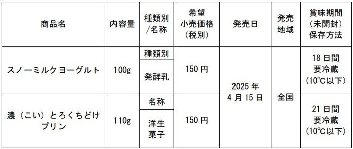 雪印メグミルク 創業100周年記念商品発売 「スノーミルクヨーグルト」「濃(こい)とろくちどけプリン」 2025年4月15日(火)より全国にて新発売