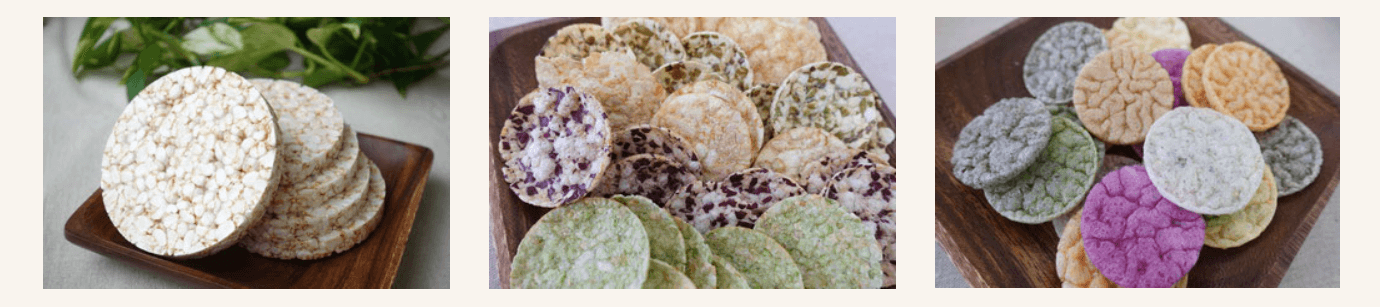機械メーカーのプライドをかけ、玄米や豆、野菜などの素材を楽しめるぽんせんべいを取り揃えています。