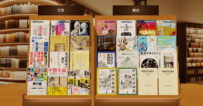 雑誌を指で触れたときは上に取り出すアニメーションが入り、表紙全体を見ることができます。他ジャンルの本棚と同じく、実店舗の書店へ行ったときのような雰囲気で、雑誌を探すワクワクを感じることができます。