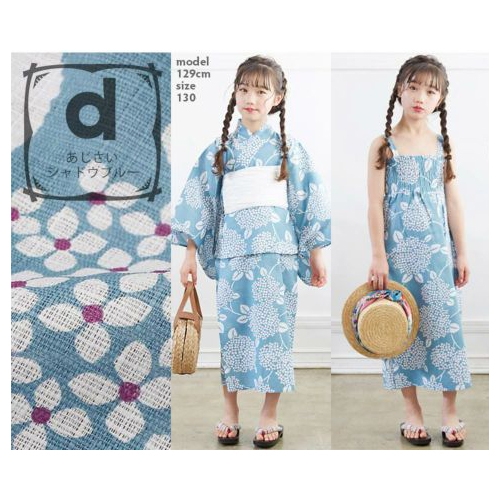 2024年セパレート浴衣新柄の「ヒマワリネイビー」、「ヒマワリライトグレー」、そして昨年からの継続柄は、女の子用の100cm~150cmサイズも販売を予定しております。大人用と同生地で作成しておりますので、親子コーデ、姉妹コーデをお楽しみいただけます。