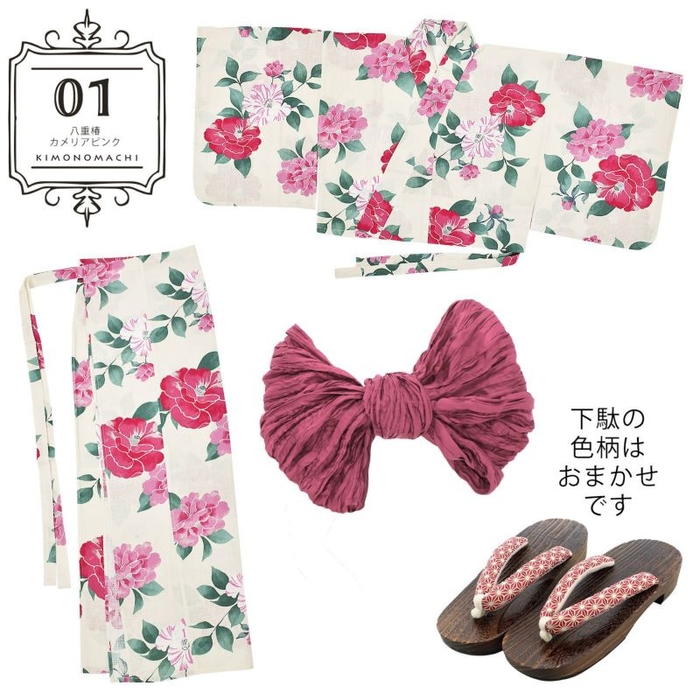 下駄もコーディネートしてお届けします(下駄はおまかせとなります。写真の下駄は一例です)。下駄のサイズはFサイズとなります。